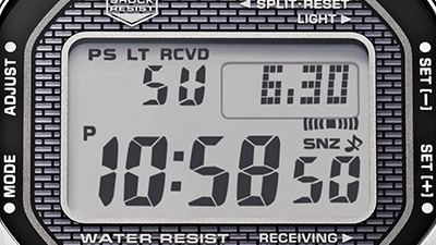 デジタル画面外周のレンガブロックが積まれたデザインは、初代G-SHOCKを踏襲しています。形状は変わらずとも、フルメタル化して外観を一新、さらに性能面でも余すことなく最新技術を搭載したG-SHOCKとなっています。